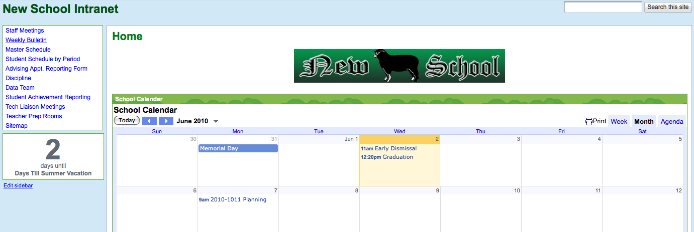 - School intranet: Houses a shared calendar, meeting notes, weekly bulletins from the principal, and data team's work.